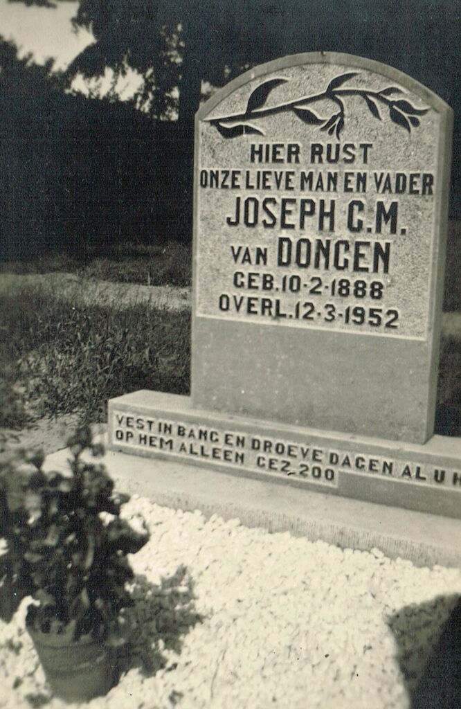 zn. van Gerardus van Dongen en Antonia de Wijs, geb. te Tilburg [nb] op 10 feb 1888, ovl. (64 jaar oud) te ‘s‑Hertogenbosch [nb] op 12 mrt 1952.